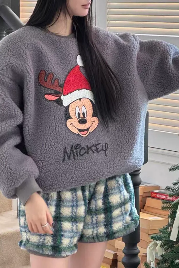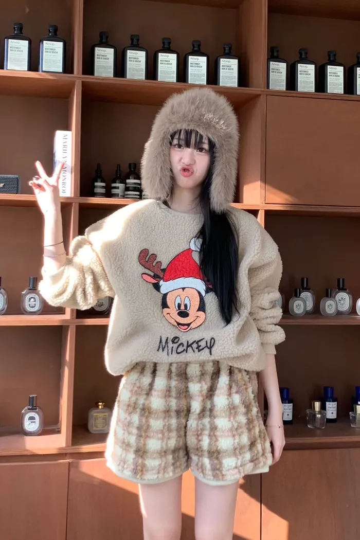羊羔毛米ki衛衣格紋短褲套裝 904