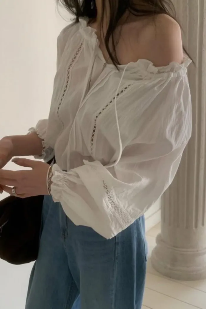 清新感~緹花鬆緊上衣306