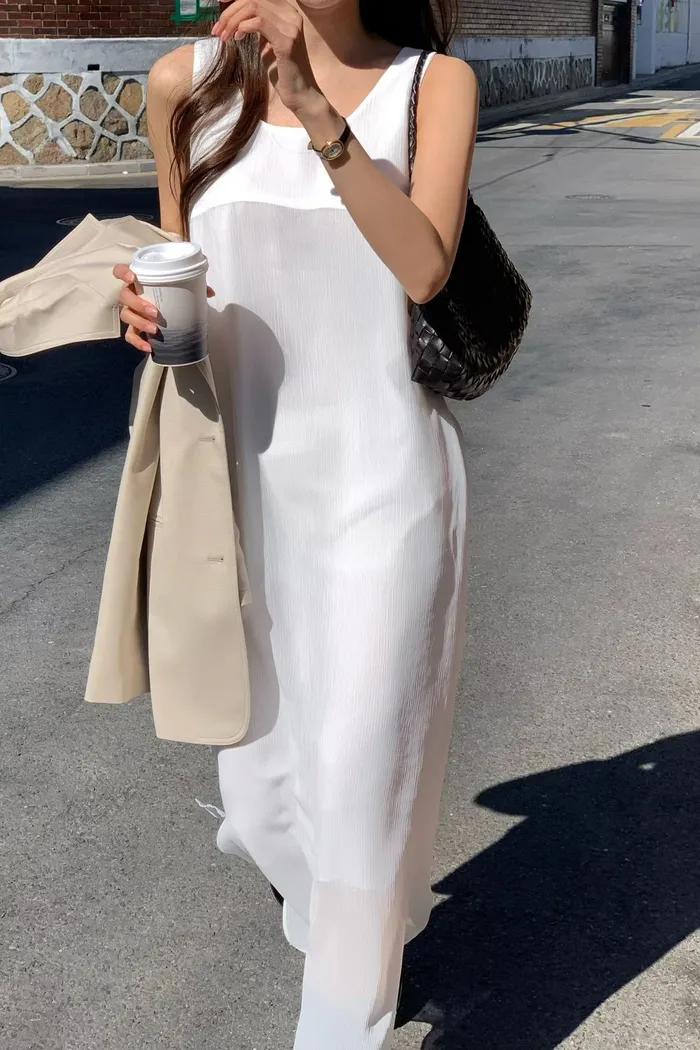 簡約背心紡紗洋裝 313