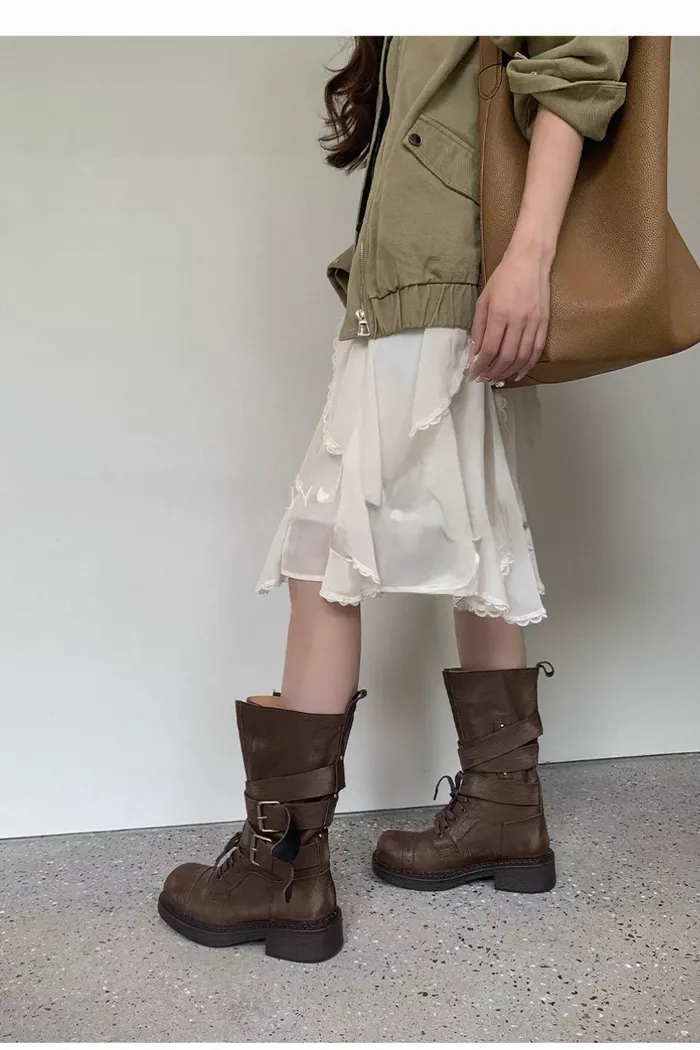 質感酷甜雙環工裝靴 137(建議大半號,腳寬建議大一號)