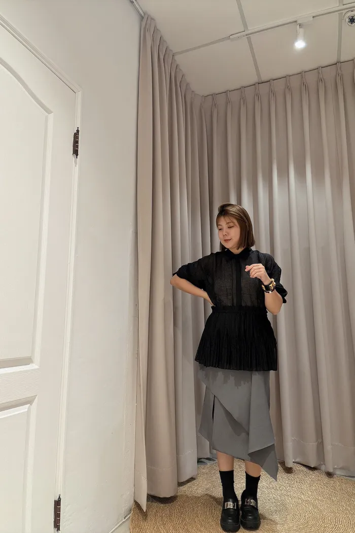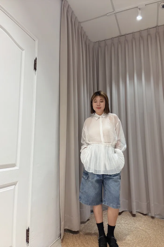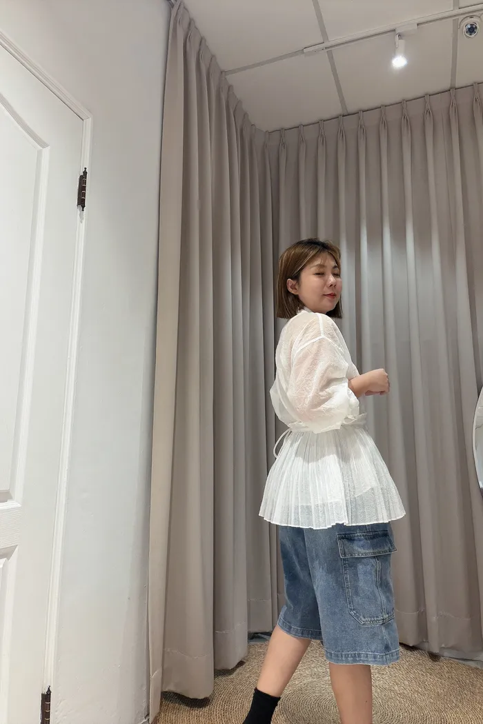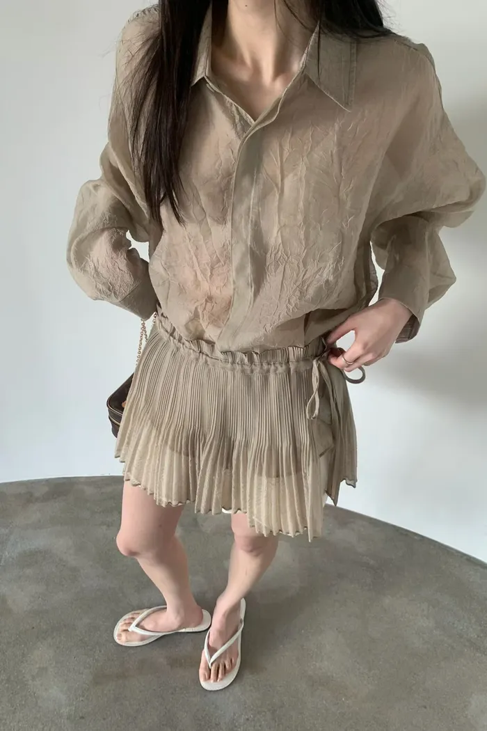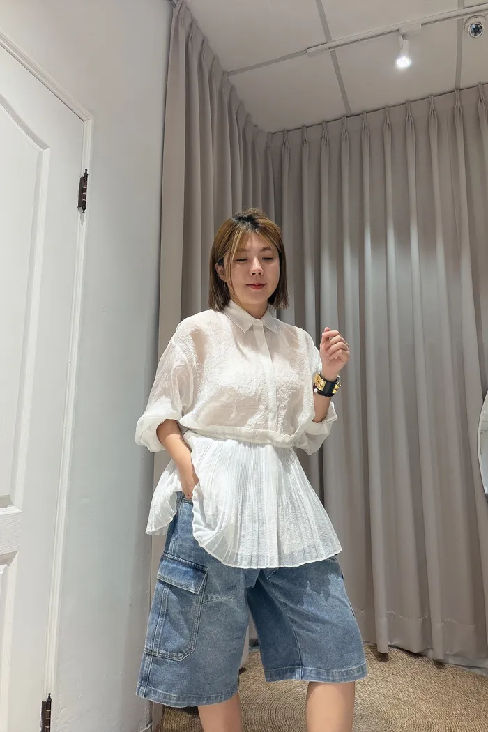 愛設計會愛👋🏻紋理感襯衫綁帶百褶裙 708