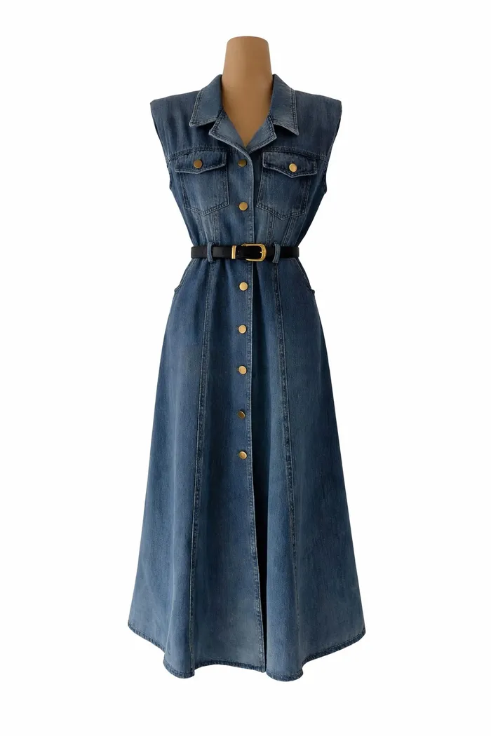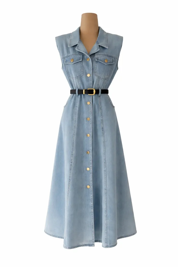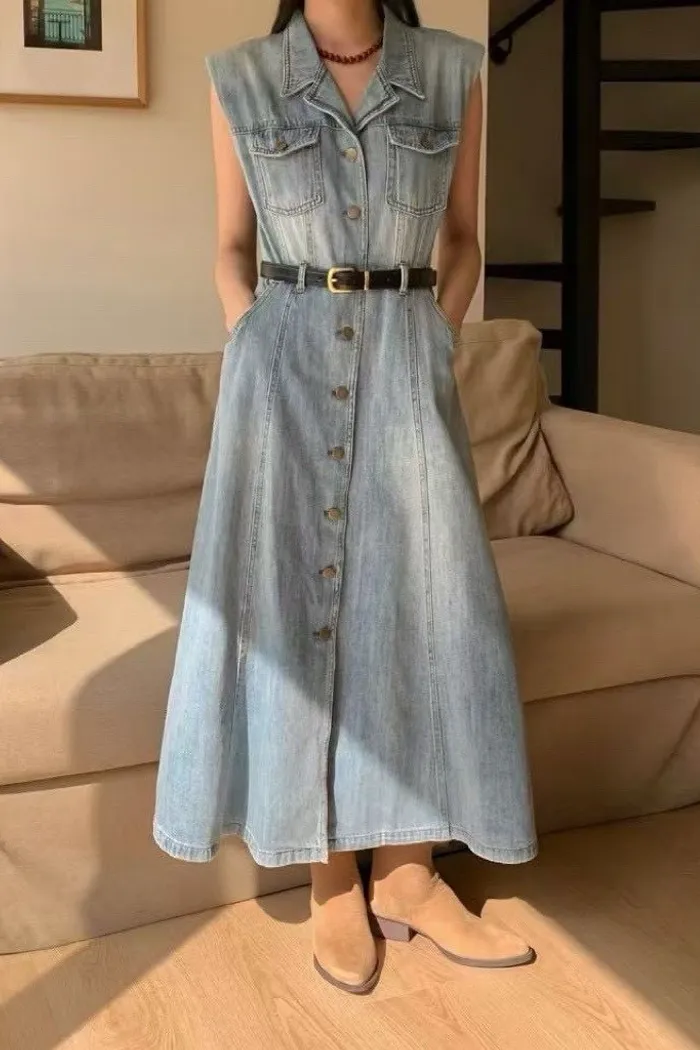 附皮帶顯瘦牛仔洋 727
