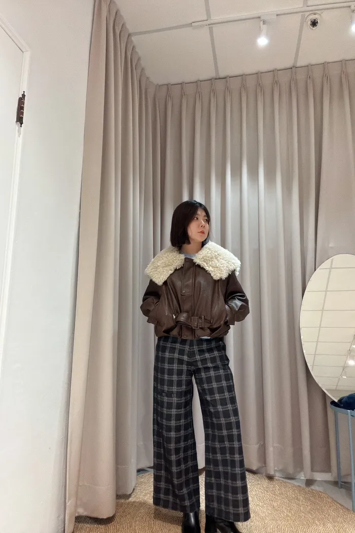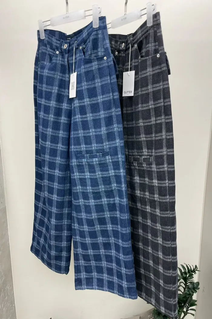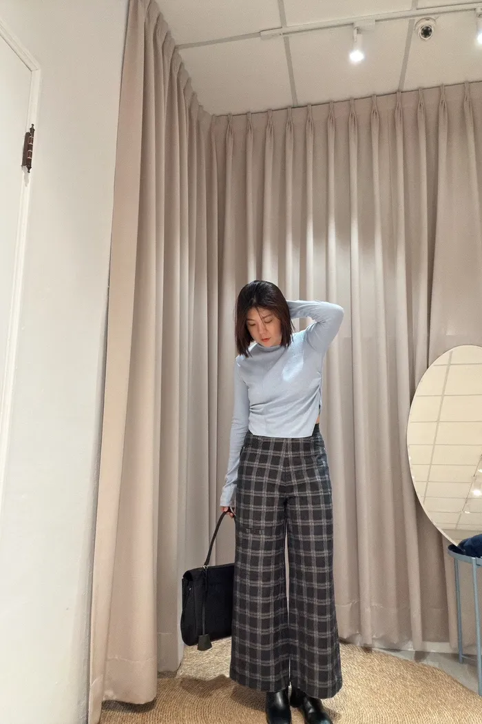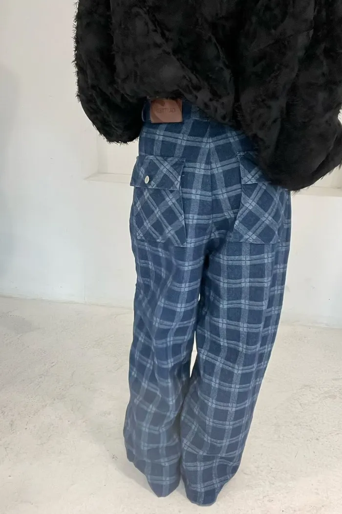 好有質感~特殊設計粗格長褲 536