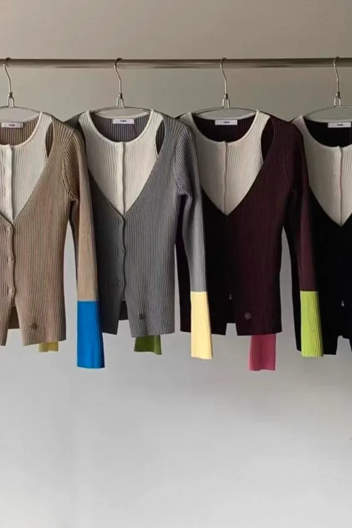 骨感拼接兩件式針織上衣 921(黑色斷貨)